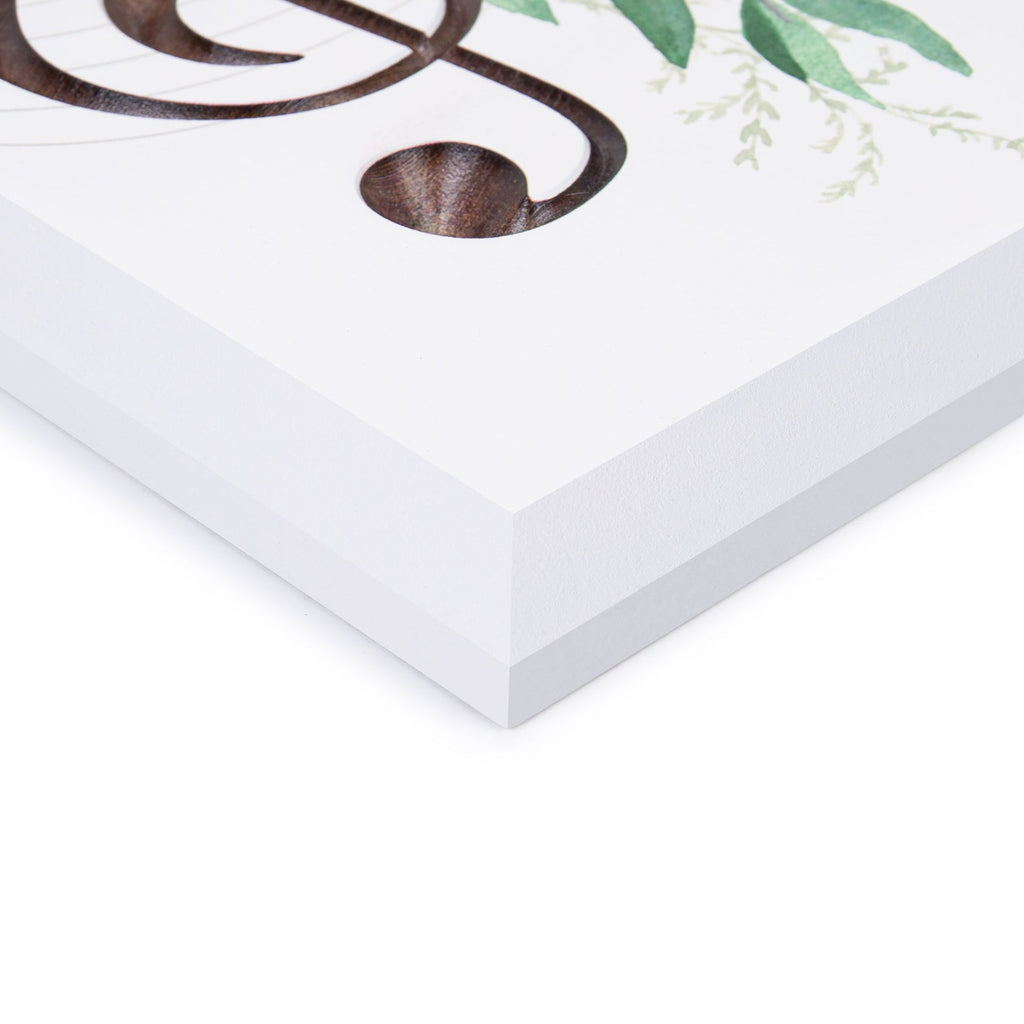 Dit bord is voorzien van gedetailleerde houtsnijwerken in zachte kleurtinten gecombineerd met een vrolijke boodschap. Het bord heeft een ophangoog voor eenvoudige bevestiging.