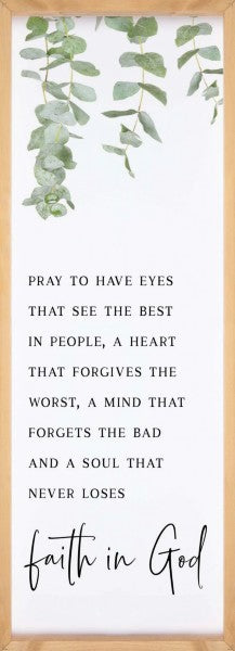 Deze handgemaakte, ingelijste decoratie creëert een traditionele, landelijke uitstraling door een natuurlijke, gebeitst grenenhouten lijst te combineren met inspirerende typografie. Van de textuur in het hout tot de plaatsing van de tekst, dit stuk is kunstzinnig gedetailleerd. De diepe, rechthoekige lijst is geschikt voor tafeldecoratie en kan ook aan de muur worden bevestigd met spijkers.