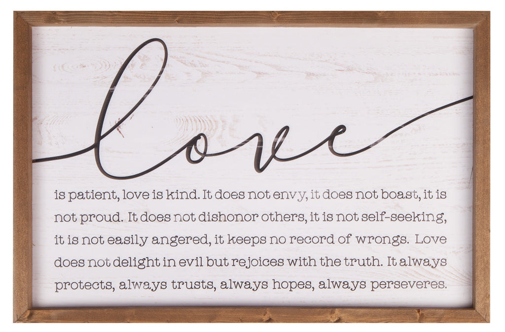 Dit handgemaakte, ingelijste decoratie-item creëert een traditionele, landelijke uitstraling door een natuurlijke, gebeitst grenen lijst te combineren met inspirerende typografie. Van de textuur in het hout tot de plaatsing van de tekst, dit stuk is kunstzinnig gedetailleerd. De diepe, ingelijste lijst is geschikt voor tafeldecoratie en kan ook aan de muur worden bevestigd met spijkers.
