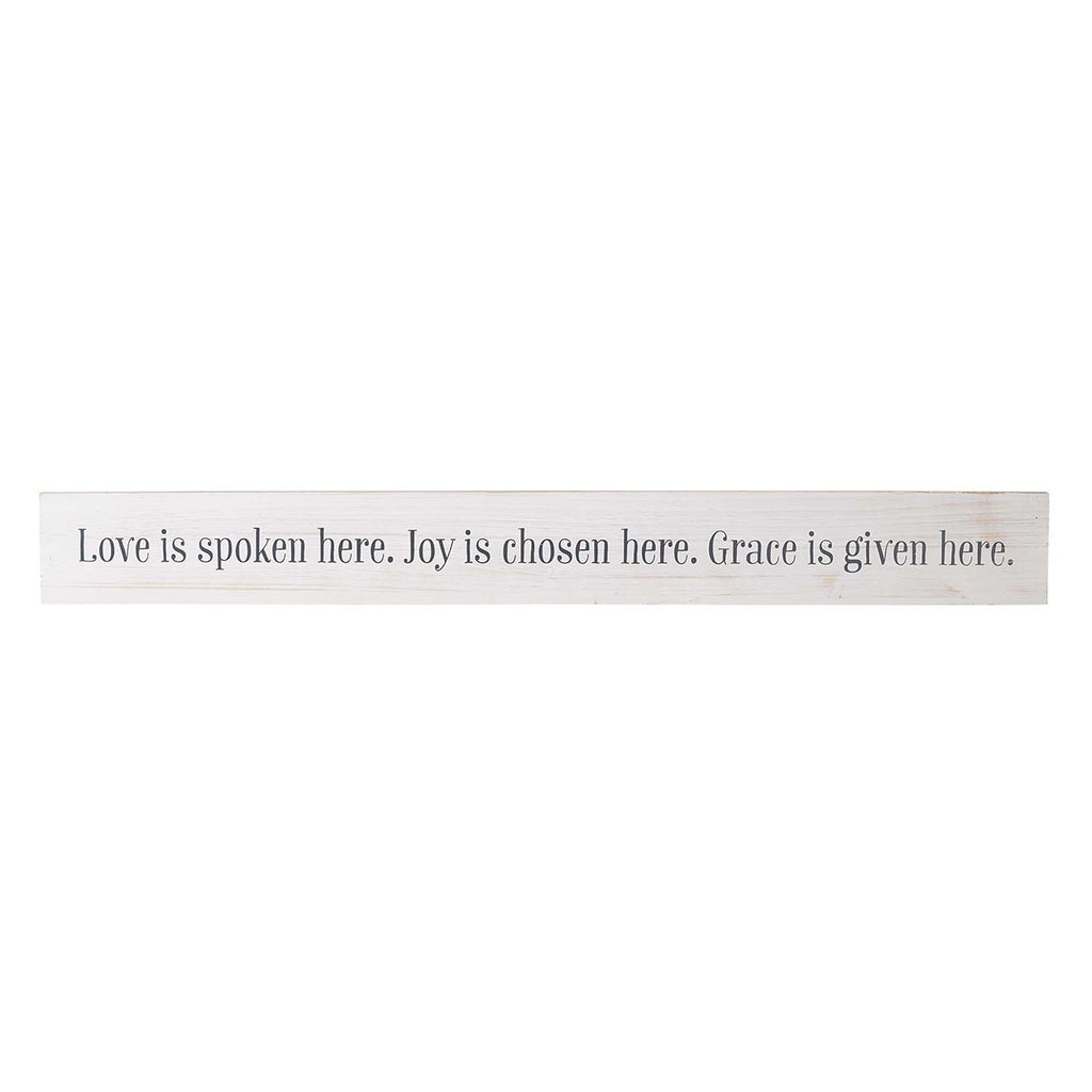 Voeg een vleugje moderne boerderijcharme toe aan je huis of keuken met de Love Joy Grace Wood Wall Art. Door het lange, smalle formaat is hij perfect om boven een deur of raam te hangen. Iedereen die hem ziet, wordt herinnerd aan de doordachte acties van een gelukkig, zorgzaam thuis: