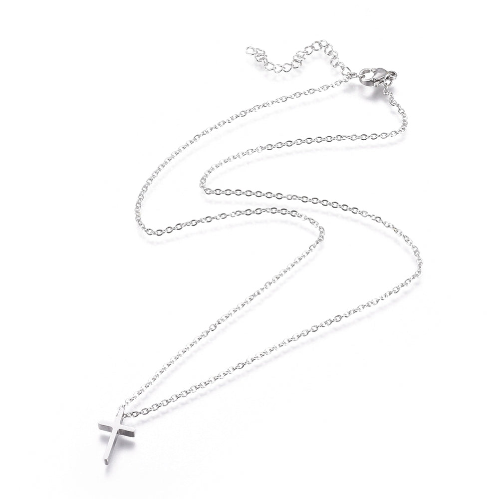 Gemaakt van roestvrij staal 304 dat niet aanslaat, is dit duurzame en tijdloze sieraad perfect voor dagelijks gebruik. De minimalistische kruishanger van 14x9x3 mm hangt aan een 45 cm lange kabelketting en biedt een klassieke maar toch moderne look.