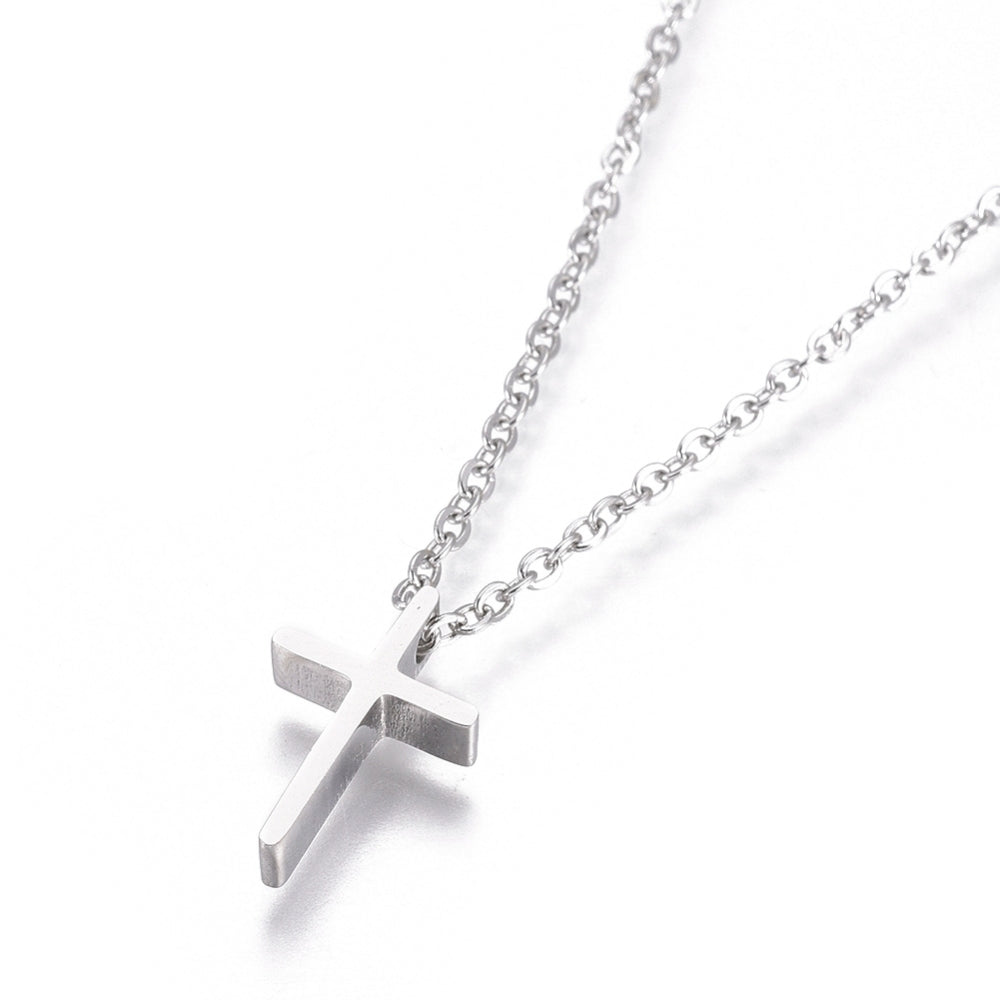 Toon uw geloof met dit eenvoudige kruis van roestvrij staal.