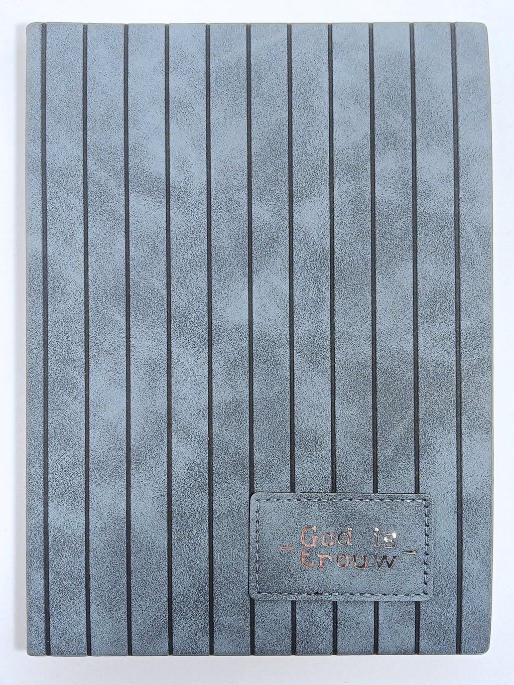 Een bijpassende boekenlegger met een duurzaam polyester lint helpt je gemakkelijk je plaats terug te vinden, waardoor dit notitieboekje zowel praktisch als stijlvol is. De tekst 'God is trouw' op de patch maakt het ideaal voor persoonlijk gebruik, als cadeau of voor momenten van rustige reflectie.