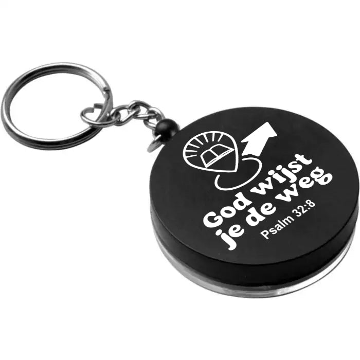 Jong en oud beleven plezier aan dit functionele accessoire dat altijd de juiste richting wijst. De bedrukking “God wijst je de weg” geeft de sleutelhanger een bijbelse boodschap.