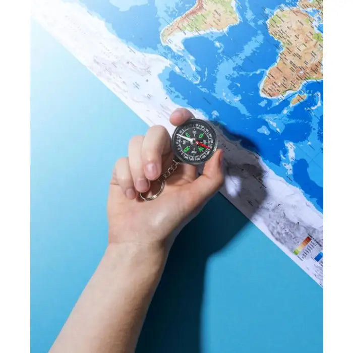 Deze compacte sleutelhanger met kompas is een praktisch cadeautje. Met zijn formaat van 9,5 x 4 cm, metalen sleutelring en zwarte wijzerplaat is hij ideaal voor dagelijks gebruik én avontuurlijke momenten. Dankzij de handige sleutelring neem je hem  hem moeiteloos overal mee naartoe, van outdoor activiteiten tot ontspannen uitstapjes.