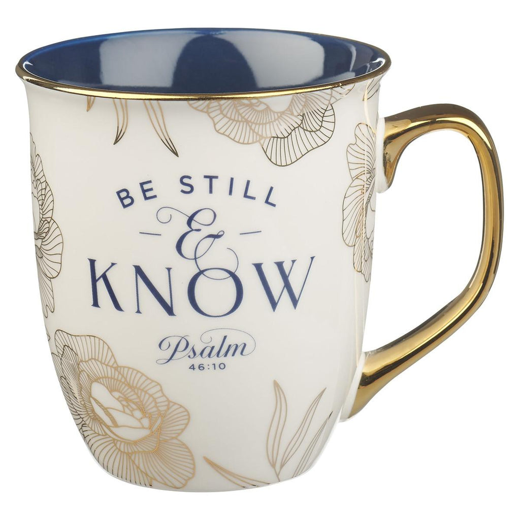 When life feels overwhelming, and fear clouds your mind, let the Be Still and Know Blue and Gold Floral Ceramic Mug< i> serve as a calming reminder of God's unshakable presence. This elegantly designed mug invites you to pause, reflect, and find peace as you sip your favorite warm drink. < p>