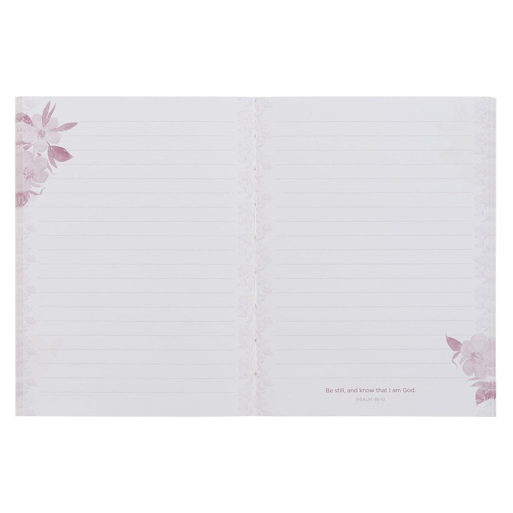 The Be Still and Know Pink Floral Medium Notebook offers a peaceful place to pause and reflect, anchored in the gentle truth of Psalm 46:10. With soft blossoms and calming tones, this notebook creates space to slow down and find stillness in God's presence.