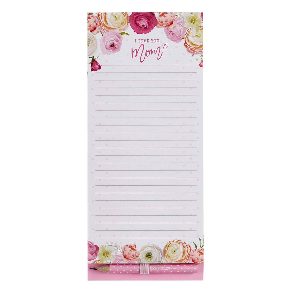 Bezorg je moeder elke keer een glimlach als ze haar boodschappenlijstje schrijft op het magnetische notitieblok I Love You, Mom.
