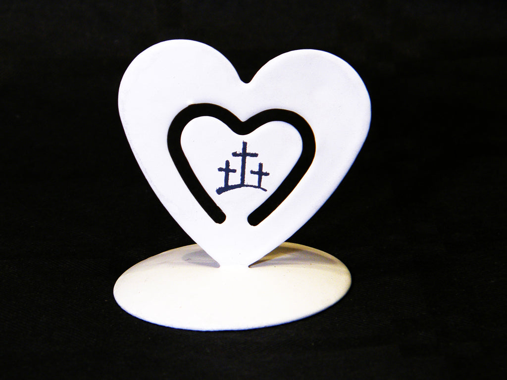 Metalen memohouder hart 4x4,5cm wit met opdruk