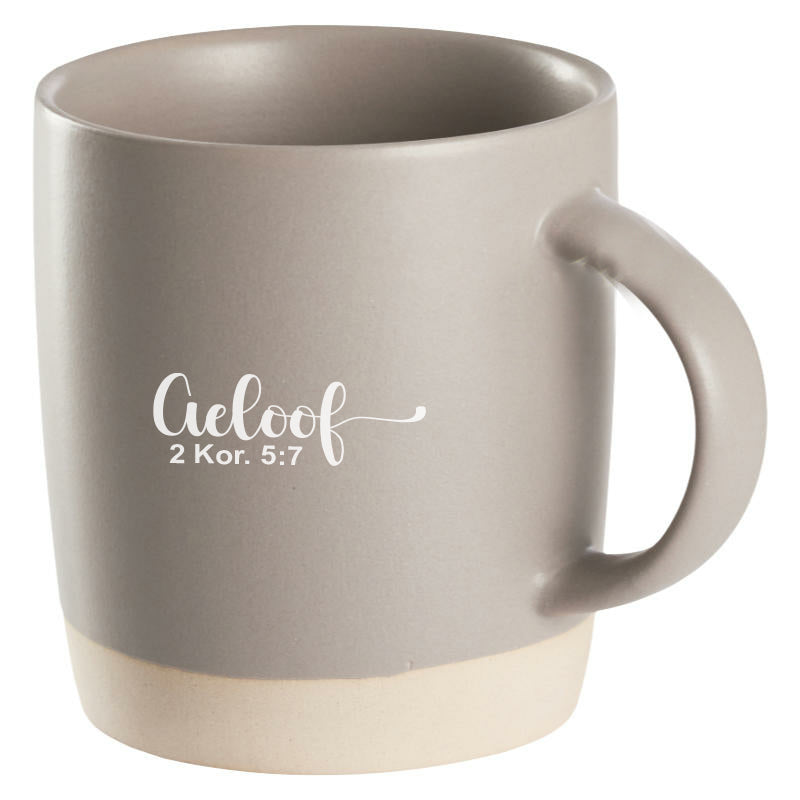 Deze mok, met een inhoud van 300ml, is versierd met de inspirerende tekst "Hoop" en de Bijbelverwijzing 2 Korinthiërs 5:7.