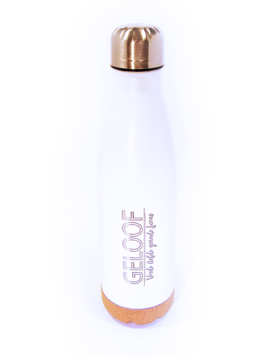 De minerale waterfles houdt je gehydrateerd met je favoriete warme of koude drank. Het kurkendetail geeft deze fles een natuurlijke uitstraling. Een zilveren draaidop complimenteert de met laser gegraveerde tekst: