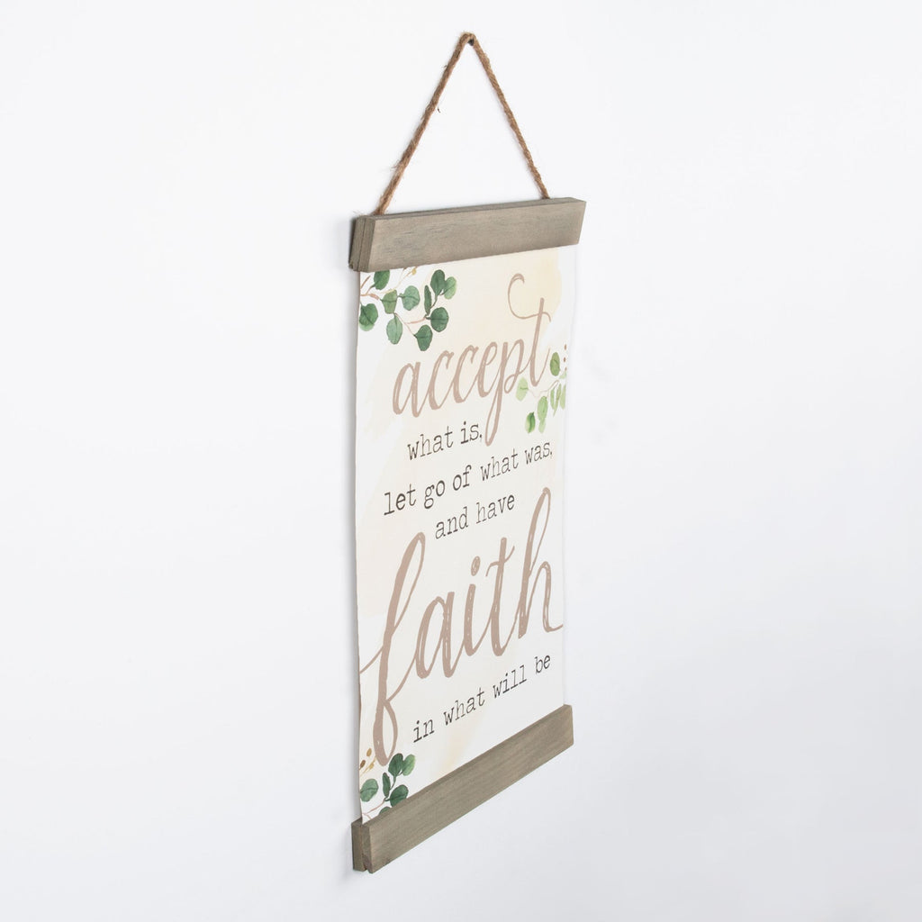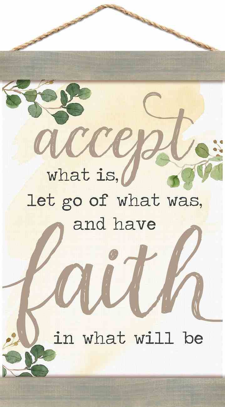 Tekst: Accepteer wat is, laat los wat was en heb vertrouwen. Bannerdecoratie