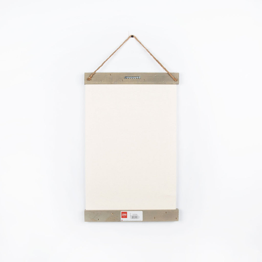Dit item combineert elementen van zowel hardhout als zacht textiel door typografische kunst op canvas te printen tussen twee licht gebeitste houten stokjes. De banner is voorzien van jute touw en een zaagtandhanger voor flexibele mogelijkheden voor wanddecoratie.