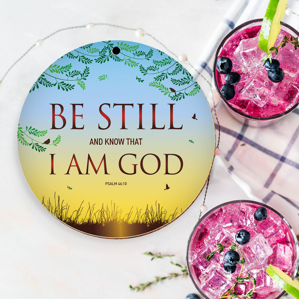 Tekst op de voorkant: 'Wees stil en weet dat Ik God ben'. - Psalm 46:10