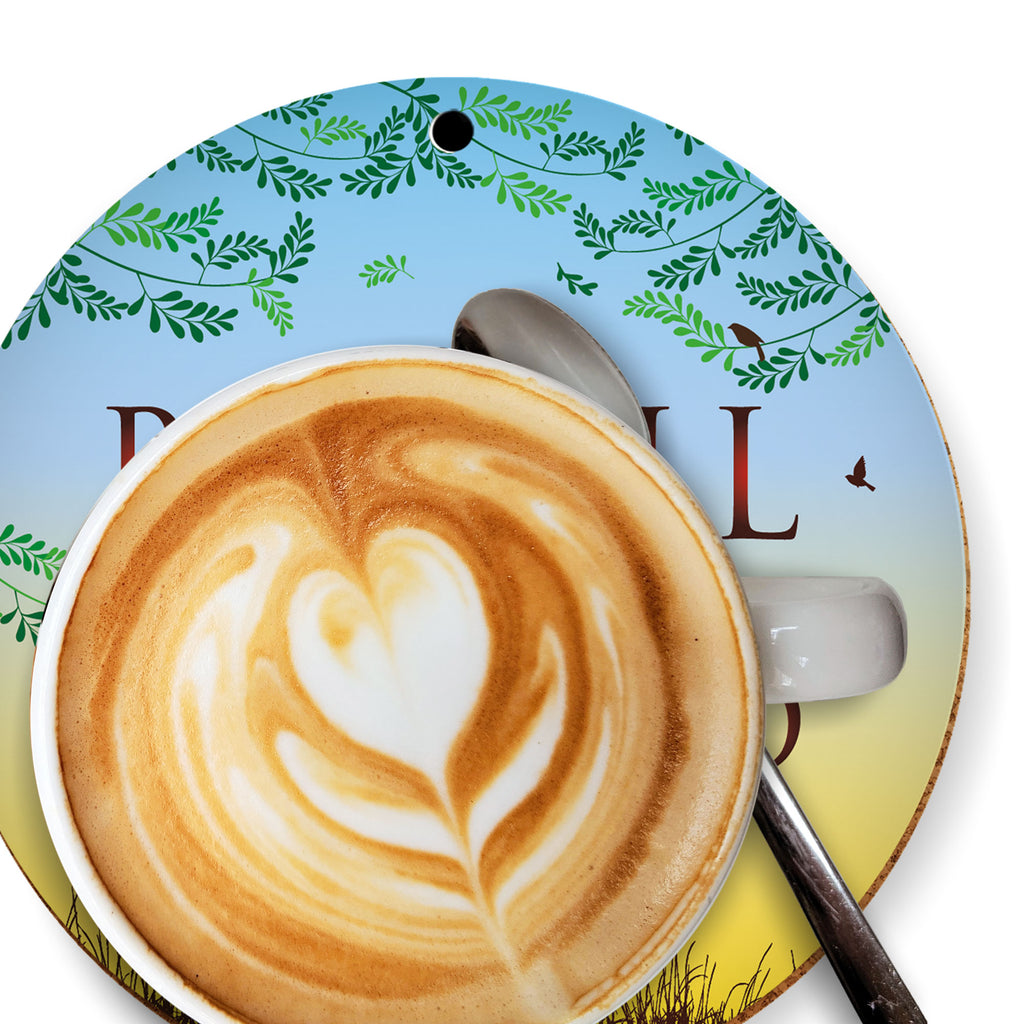 Hoge kwaliteit: keramische onderzetter met kurken onderkant en gelamineerde hoogglansafwerking.