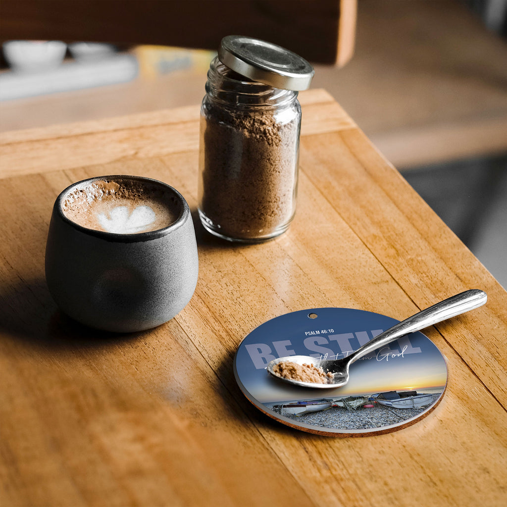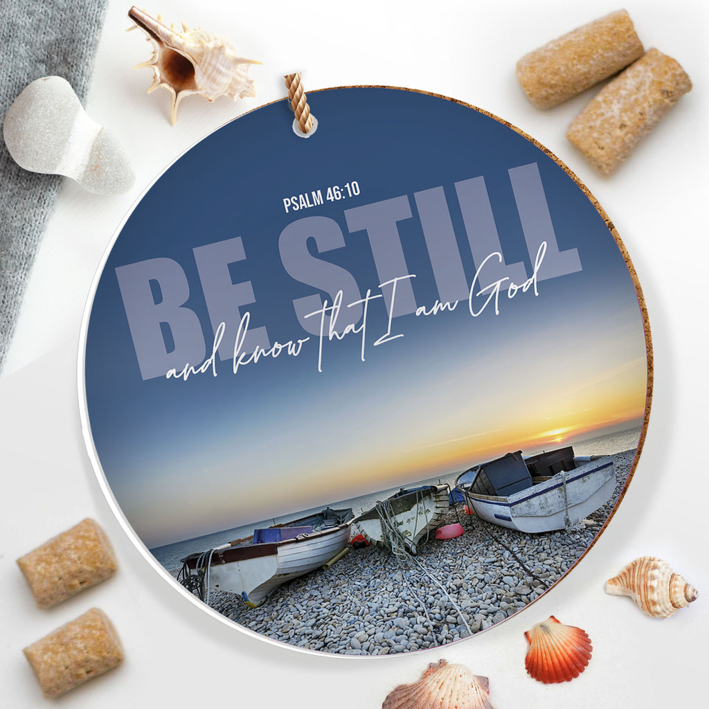 Tekst op de voorkant: 'Wees stil en weet dat Ik God ben' - Psalm 46:10