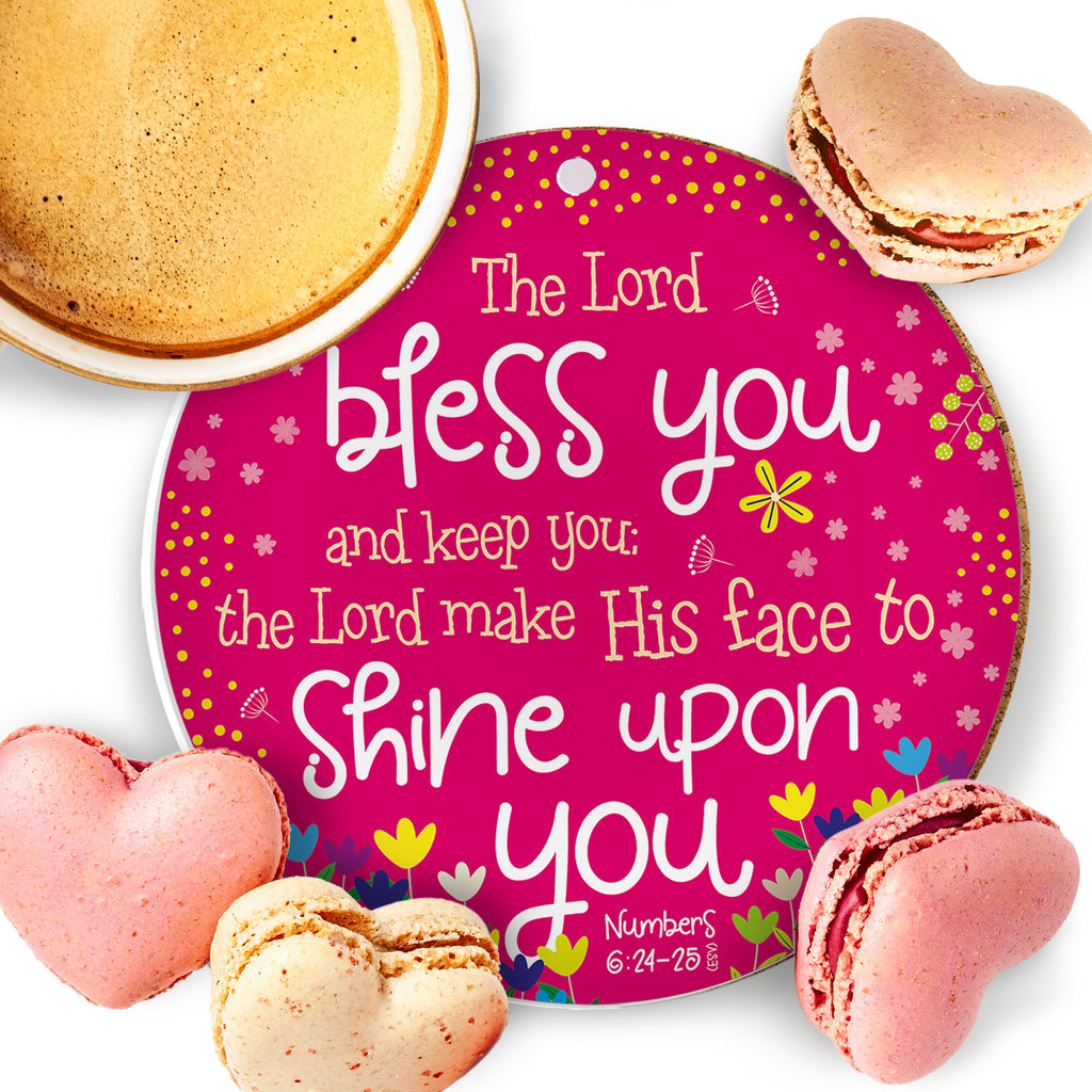 De tekst op de voorkant: 'De HEER zegene u en behoede u; de HEER doe zijn aangezicht over u lichten.' Numeri 6:24-26 (HSV)