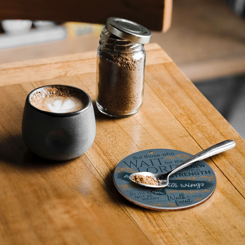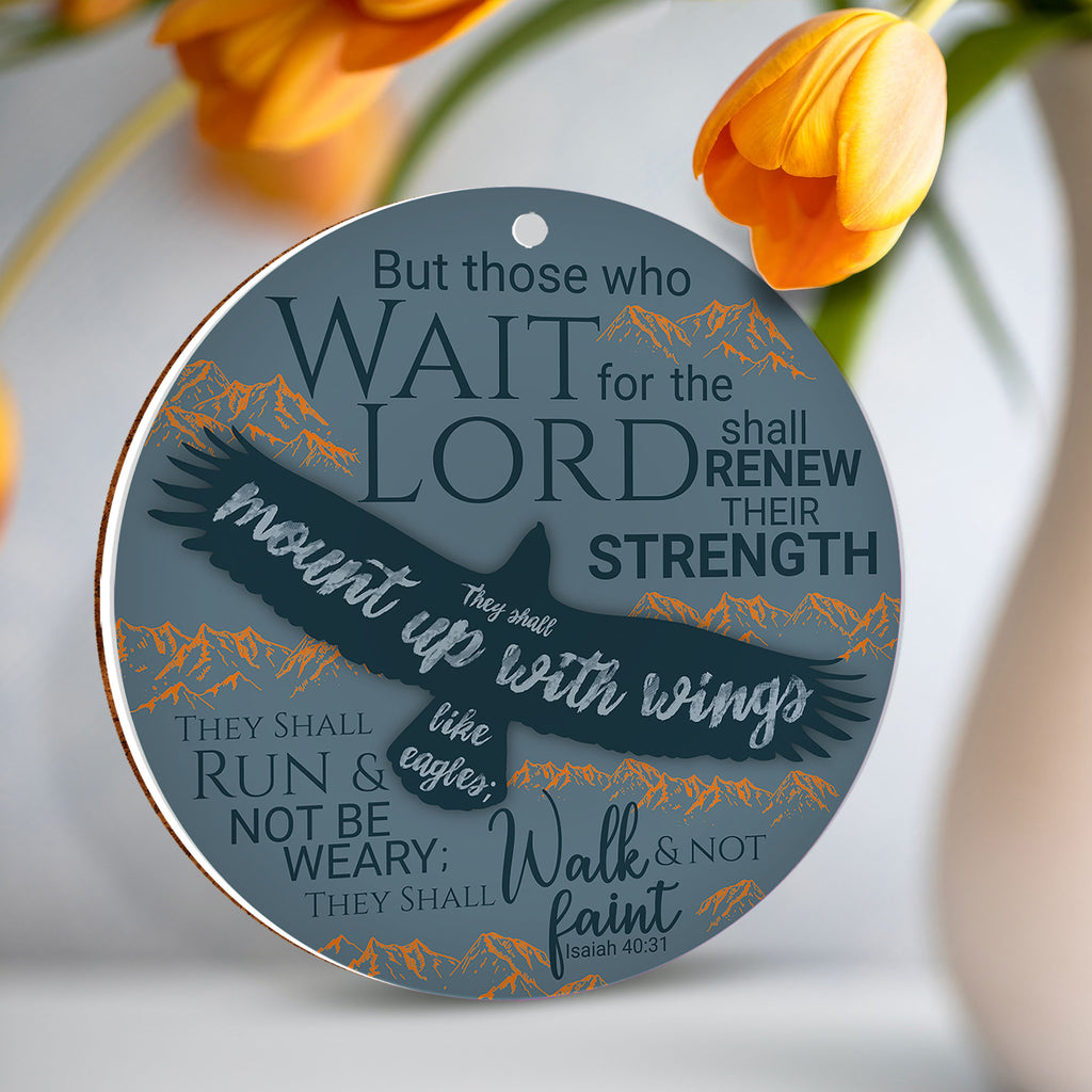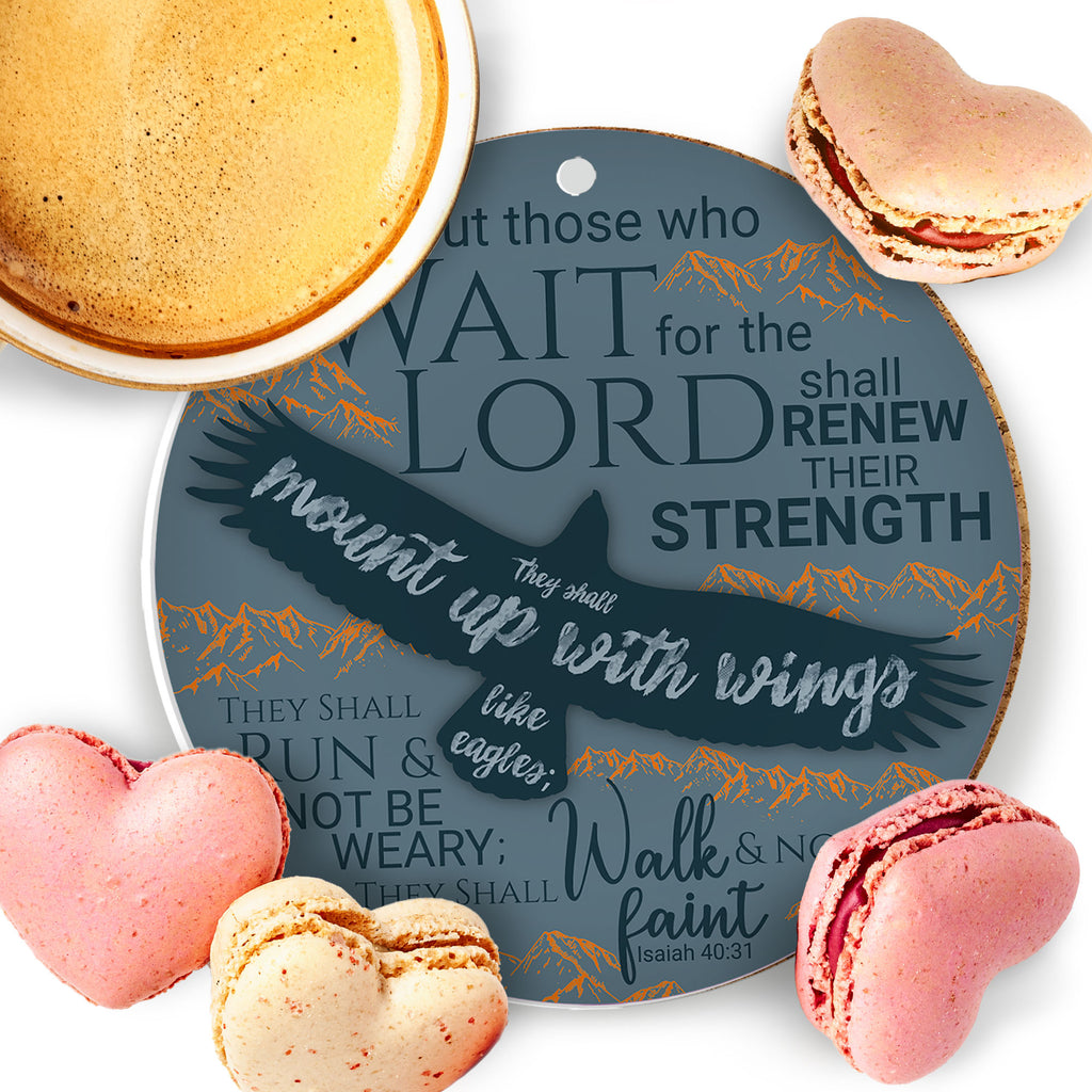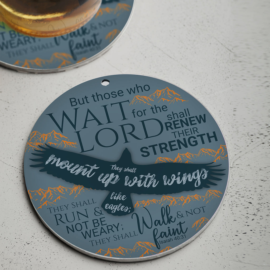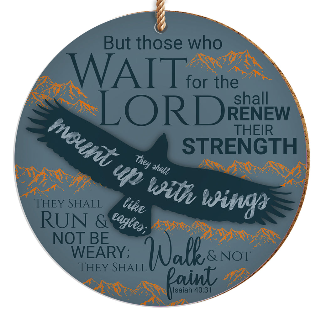 De tekst op de voorkant luidt: 'Maar wie de HEERE verwachten, putten nieuwe kracht; zij zullen hun vleugels uitslaan als arenden; zij zullen lopen en niet moede worden; zij zullen wandelen en niet mat worden.' Jesaja 40:31 (HSV)