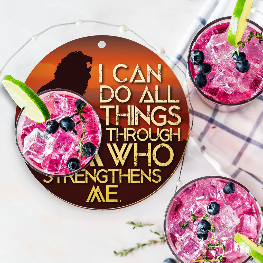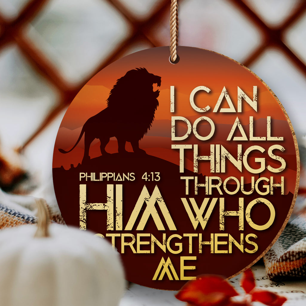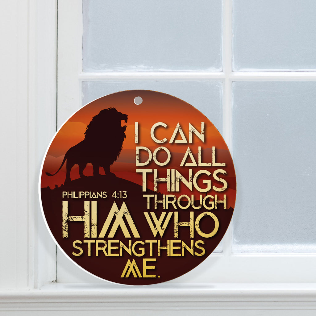 Tekst op de voorkant: 'Ik kan alle dingen doen door Hem die mij kracht geeft'. Filippenzen 4:13