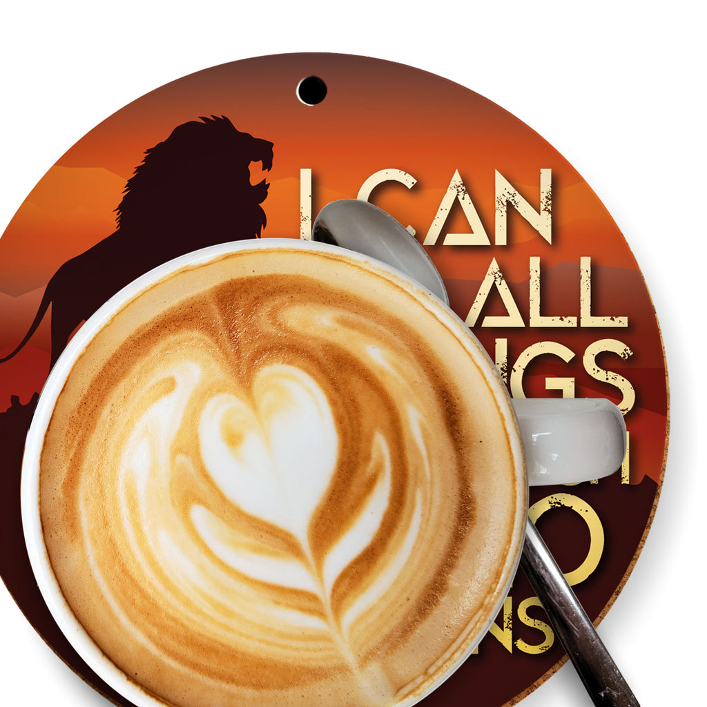 Grote keramische christelijke hangdecoratie met prachtige designs. Wordt geleverd met kurken achterkant en kan ook gebruikt worden als onderzetter of mat.