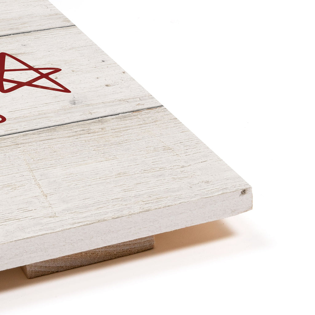 Dit met de hand gemonteerde bord is gemaakt van natuurlijke, ovengedroogde grenen latten voor een authentieke uitstraling en is ontworpen om elk huis een warme, rustieke toets te geven. Inclusief zaagtandhangers voor bevestiging aan de muur en uitlijning.