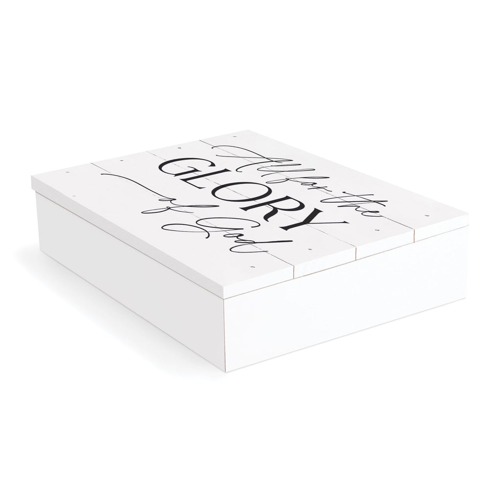 Dit bord in doosvorm, gemaakt van grenenhouten latten, is geschikt voor plaatsing op schoorsteenmantels, tafels, toonbanken en meer. Het is wit geverfd en vervolgens versierd met een inspirerende tekst die bemoedigend en opbeurend is.