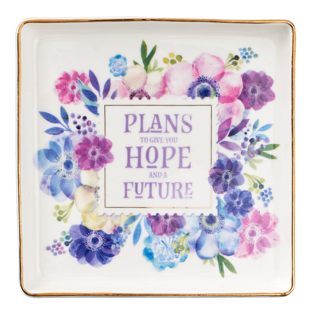 Het kleine Hope And Future Sieradenbakje is een lief en attent cadeau voor haar. Dit sieradenbakje, onderdeel van onze Floral Collection, is mooi te combineren met alle andere artikelen uit de collectie. Op dit sieradenbakje staat Jeremia 29:11: "Plannen om je hoop en een toekomst te geven." Het vers is versierd met bloemmotieven, terwijl een gouden rand dit porseleinen exemplaar afmaakt.