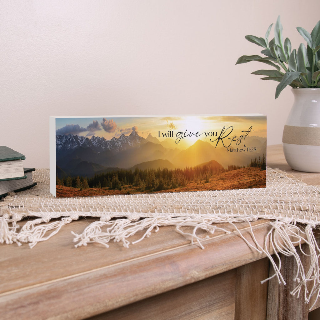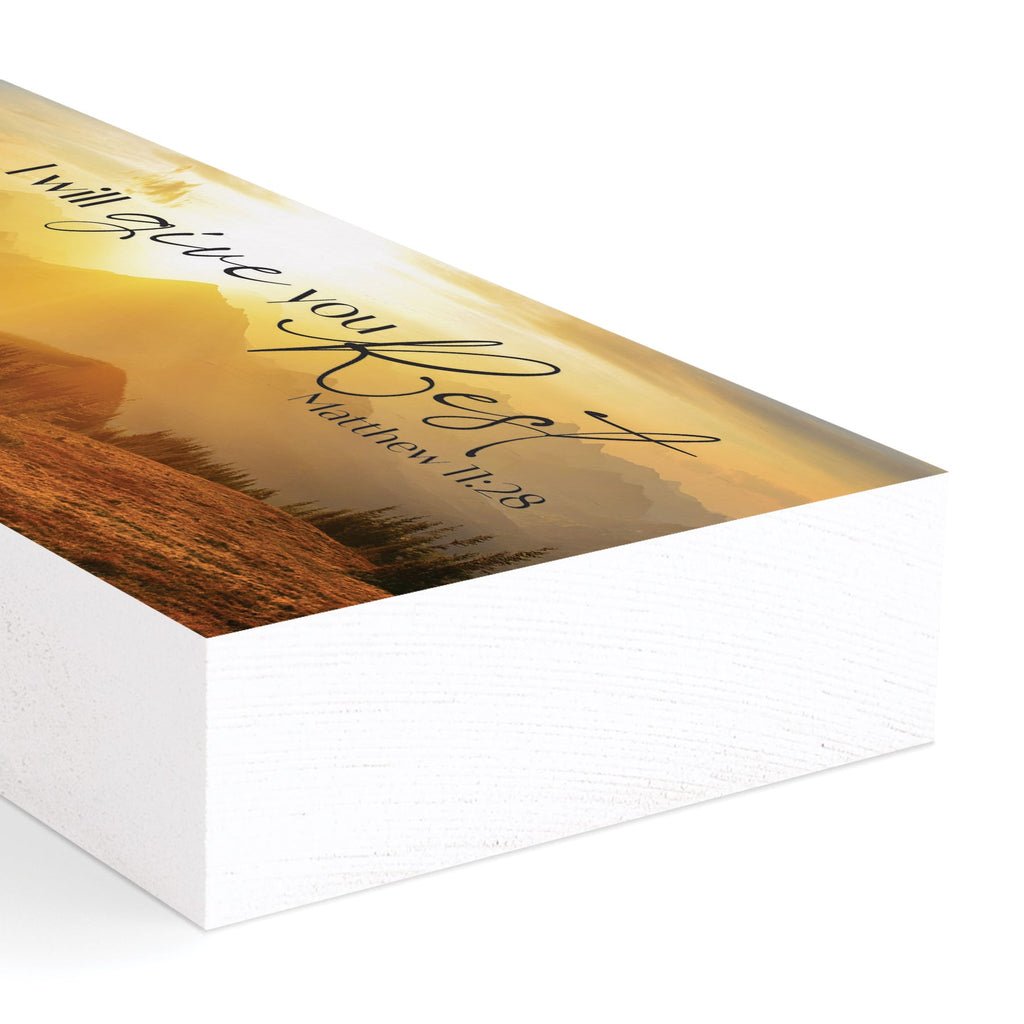 Dit bord, gemaakt van grenenhout, heeft een kunstzinnig vormgegeven achtergrond en een bemoedigende boodschap. Het is ontworpen om neer te zetten en een vleugje inspiratie toe te voegen aan een bureau, aanrecht of plank.