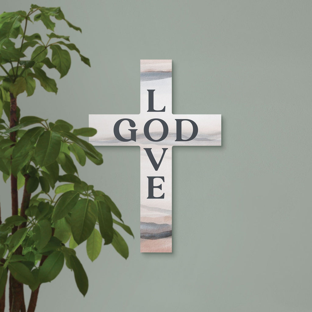Houten kruis dat een echte blikvanger is aan de muur. Gemaakt van MDF en met ophanggleuven aan de achterkant voor eenvoudige montage.