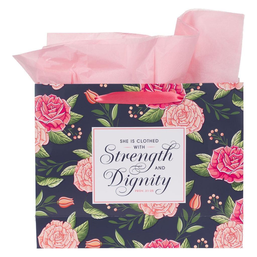 Toon uw bewondering voor een gelovige vrouw door haar een bedankje te geven in de inspirerende Strength and Dignity Pink Rose Large Landscape Gift Bag met kaartenset, een perfecte aanvulling op een attent cadeau.