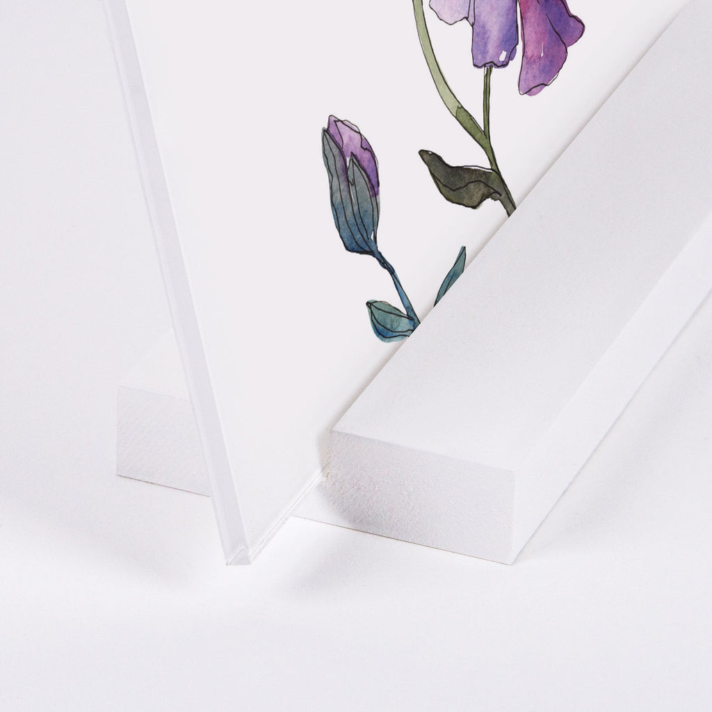Dit bord combineert zowel rustieke als moderne elementen: handgemaakte grenen standaards gecombineerd met acryl inzetstukken. De glanzende textuur van het acryl versterkt de kleuren, waardoor zowel kunst als sentiment tot leven komen.