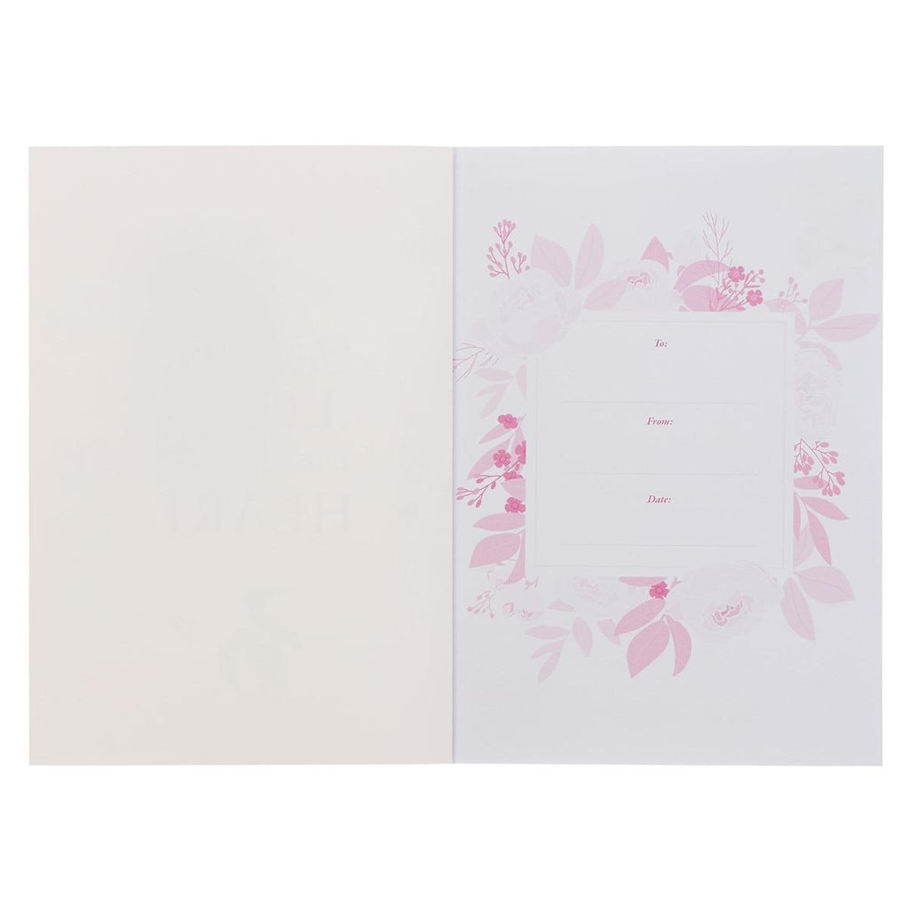 A charming bouquet of flowers graces the back cover to give the design a cohesive and feminine finish. You'll find 160 lined pages perfect for writing prayers, dreams, or to-do lists. These pages each feature a Scripture verse for added inspiration. The notebook's compact size and lightweight construction make it easy to carry anywhere.