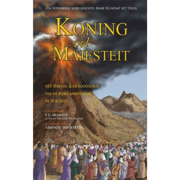 Mensen houden van verhalen. Van verhalen met een goede afloop, van intriges waarbij het goede het kwade overwint. De oude boeken van de profeten vertellen een oorspronkelijk verhaal vol romantiek en bevrijding, waarin het goede op zeer mysterieuze wijze een einde maakt aan het kwade. Dit oude, meest gelezen verhaal met zijn verheven en epische wedingen, gaat over een Koning en zijn geheime personages plan om zijn opstandige onderdanen uit het koninkrijk van de duisternis te bevrijden en ze in staat te stellen om nog lang en gelukkig met Hem te kunnen leven in zijn Koninkrijk van licht. Maar is dit verhaal echt gebeurd? Of gaat het om een fantasieverhaal? Dit rijk geïllustreerde verhaal geeft een duidelijk antwoord. Ervaar het verhaal. Bezoek de koninkrijken. Ontmoet de Koning. En beslis. 'Koning vol majesteit' vertelt het verhaal van de eeuwige Koning in zeventig sleutelscènes. Deze vertelling zal mensen van alle leeftijden inspireren. Bij elke scène heeft Arminda San Martin prachtige tekeningen gemaakt.
