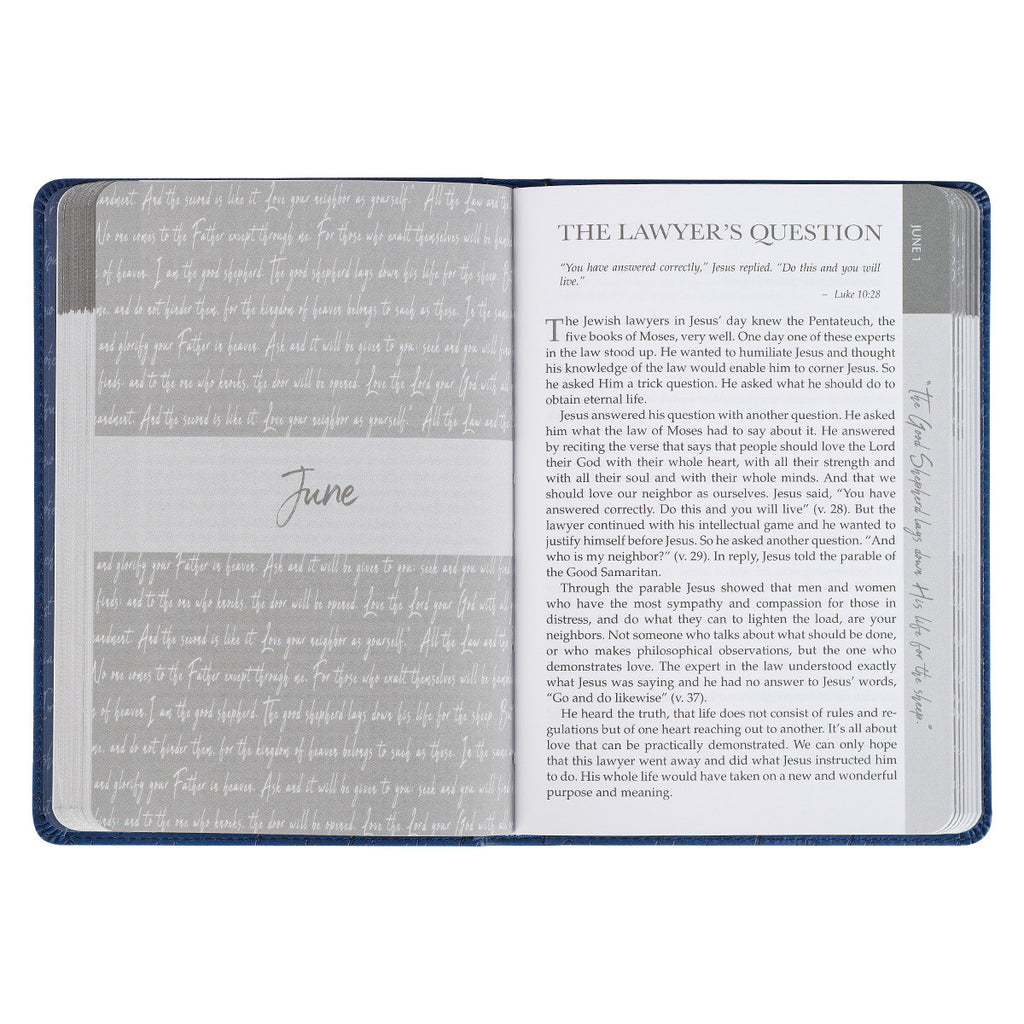 The Words of Jesus for Daily Living Blue Faux Leather Devotional offers 366 insightful devotions on getting to know Jesus better, loving Him more deeply, and following Him more closely by reflecting on His life-changing words.