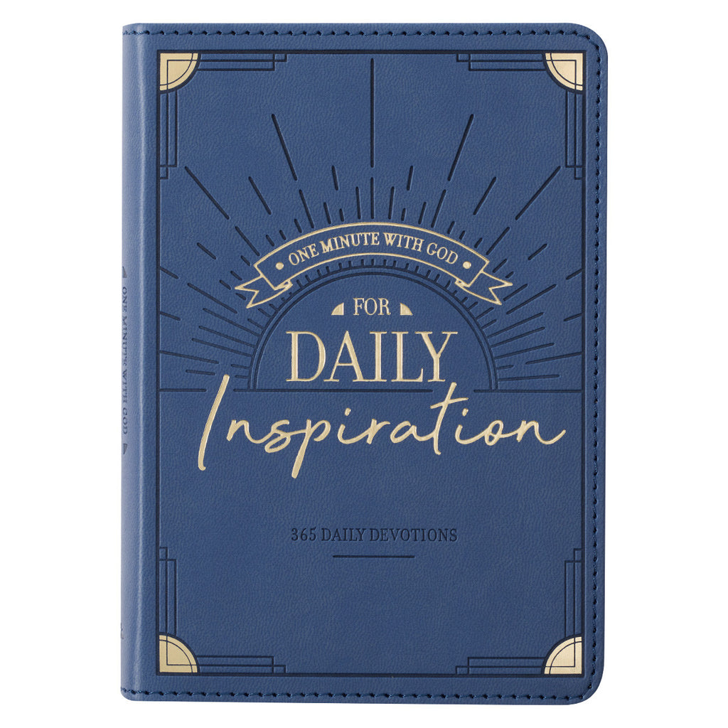Get your daily dose of spiritual inspiration when you read through the One Minute With God For Daily Inspiration Devotional. The devotional's bright lapiz blue faux leather cover is heat-debossed with a sunrise design that wraps around the gold foiled title. One Minute with God for Daily Inspiration The cover design is grounded by a heat-debossed frame with bright gold foiled corner accents that run along the book's topstitched edges. The page edges are gilt-edged, and the interior pages all feature the same gold foiled sunrise design that spans the book's center and flows over to both pages in the page spread. The text is printed in n easy-to-read blue font and accented with gold foil. A blue satin ribbon marker is included to mark your page. Each of the 365 daily entries starts with a date and is followed by a title, question, God's response, and concludes with a promise from God. The meditative thoughts and related Scripture verses of each reading will inspire the reader to live a life that reflects Christ. The One Minute With God For Daily Inspiration Devotional is a beautiful devotional to give as a Christmas or birthday gift for a son or husband. Blue cover with gold foiled detail Faux leather cover Heat-debossed and gold foiled design Flexcover 365 daily devotions Gilt-edged pages 392 pages Two-color interior Attached ribbon marker Presentation page Size: 163 x 112 x 20mm
