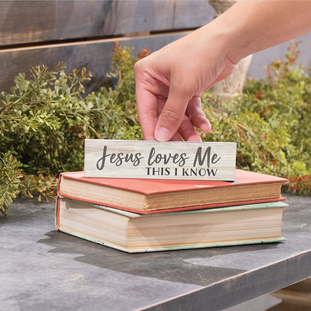 Thin strips of pine are cut and printed to make these little signs. Sit on a nightstand, office desk or window sill – the possibilities are endless. Brief sentiments of encouragement are combined with a weathered, farmhouse style.