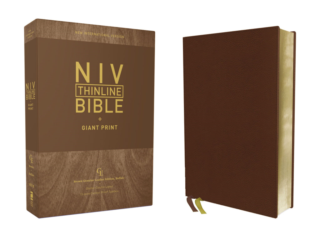 NIV Thinline Bible/Giant Print (Comfort Print)-Brown Genuine Buffalo Leather